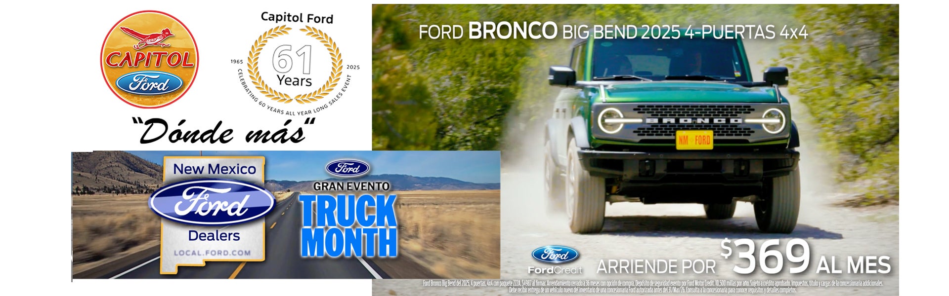 Contamos con un sólido y comprometido personal de ventas con muchos años de experiencia satisfaciendo las necesidades de nuestros clientes. ¡Siéntase libre de navegar por nuestro inventario en línea, solicitar más información sobre vehículos, programar una prueba de manejo o solicitar financiamiento! Si está buscando uno de los "mejores" concesionarios Ford en el área de Santa Fe, Los Álamos y Albuquerque, NM, lo tenemos cubierto en Capitol Ford Santa Fe.