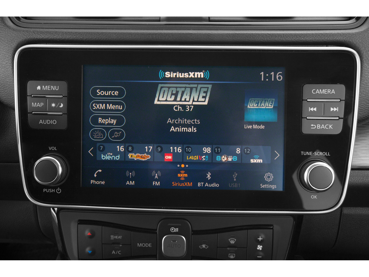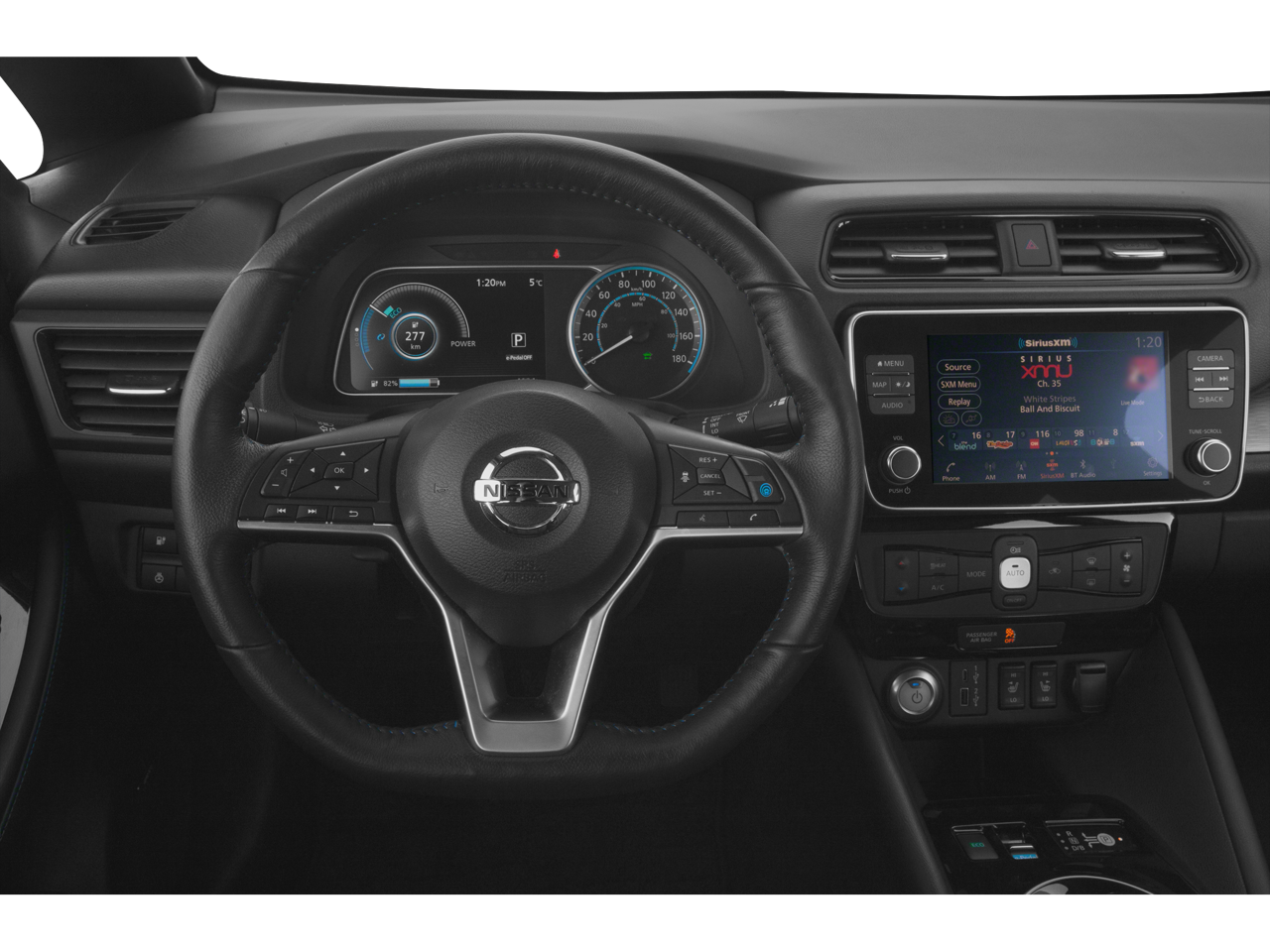 - Radio: NissanConnect EV w/Nav/Bose Premium Audio -inc: Nissan door to door navigation w/3D building graphics and satellite imagery, connected navigation features include online POI search, door-to-door navigation, online premium traffic information, Over-the-Air (OTA) updates for the head unit firmware and navigation map software via a Wi-Fi WPA2 connection, 8" color display w/multi-touch control, Apple CarPlay, Android Auto, HD radio, advanced audio features, SiriusXM radio w/advanced audio features, SiriusXM Traffic, SiriusXM Travel Link (weather, fuel prices, movie listings, stock info, sports and parking), USB connection port for iPod interface and other compatible devices, Bluetooth hands-free phone system, streaming audio via Bluetooth, hands-free text messaging assistant, remote battery status check, remote start charge, remote climate control on/off and 7 speakers