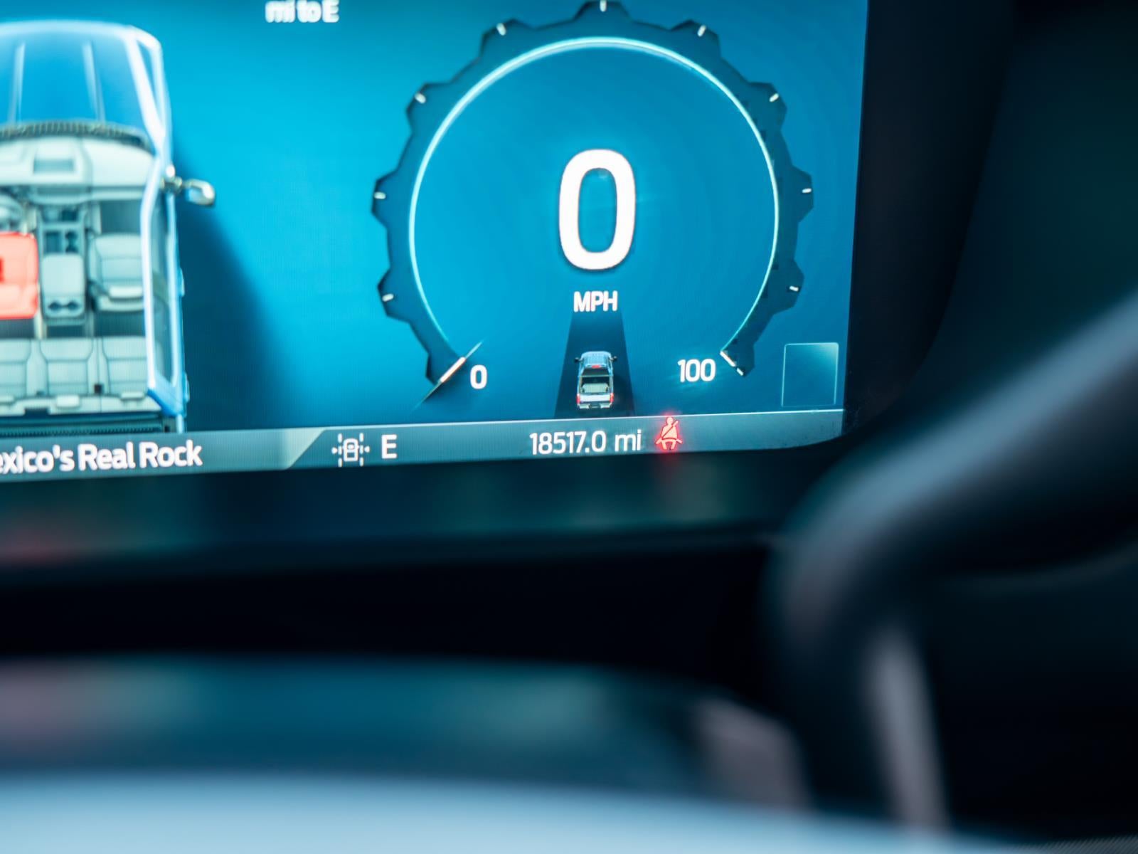 - The vehicle is equipped with a camera that displays an image of the area behind the vehicle on an interior display.